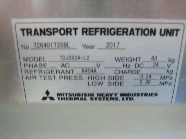冷凍機(菱重製・TDJS50DC).箱(日本フルハーフ製・GMD0/E1EF125).バックカメラ(ビューテック製)